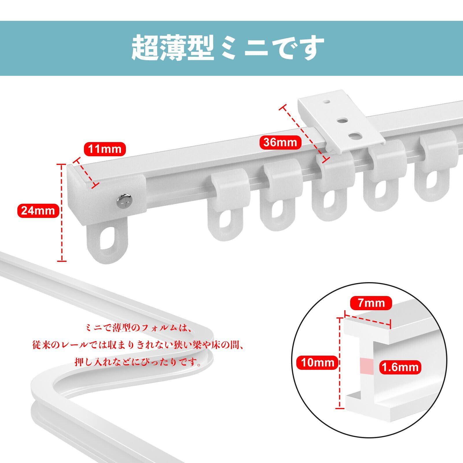 B3B4 ミニ 極小の 白黒の二色 曲がる カーテンレール 1m 2m 3m 4m 5m 6m 仕切り 出窓 シングルカーテンレール (白-天井付け-2m)