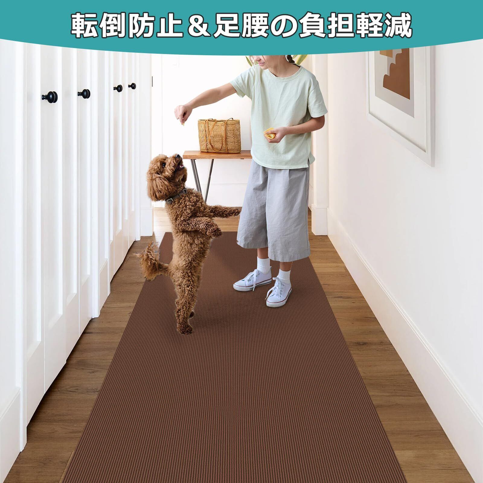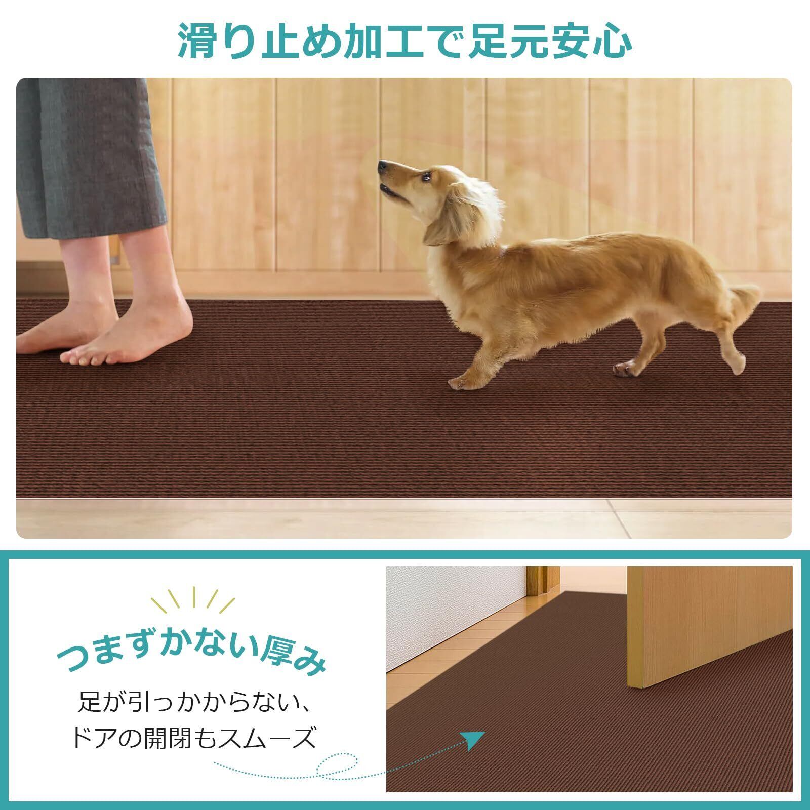 「滑り止め・ペット対応」滑りやすいフローリングで安心!廊下やリビングなど、毎日歩く場所に敷くだけで、爪を立てて歩けるため、関節や足腰への負担を軽減します。爪が引っかかりにくい素材を採用し、走り回ってもめくれず、つまずきにくいため安全!お子様やペット、シニアの方がいるご家庭にやさしい!
