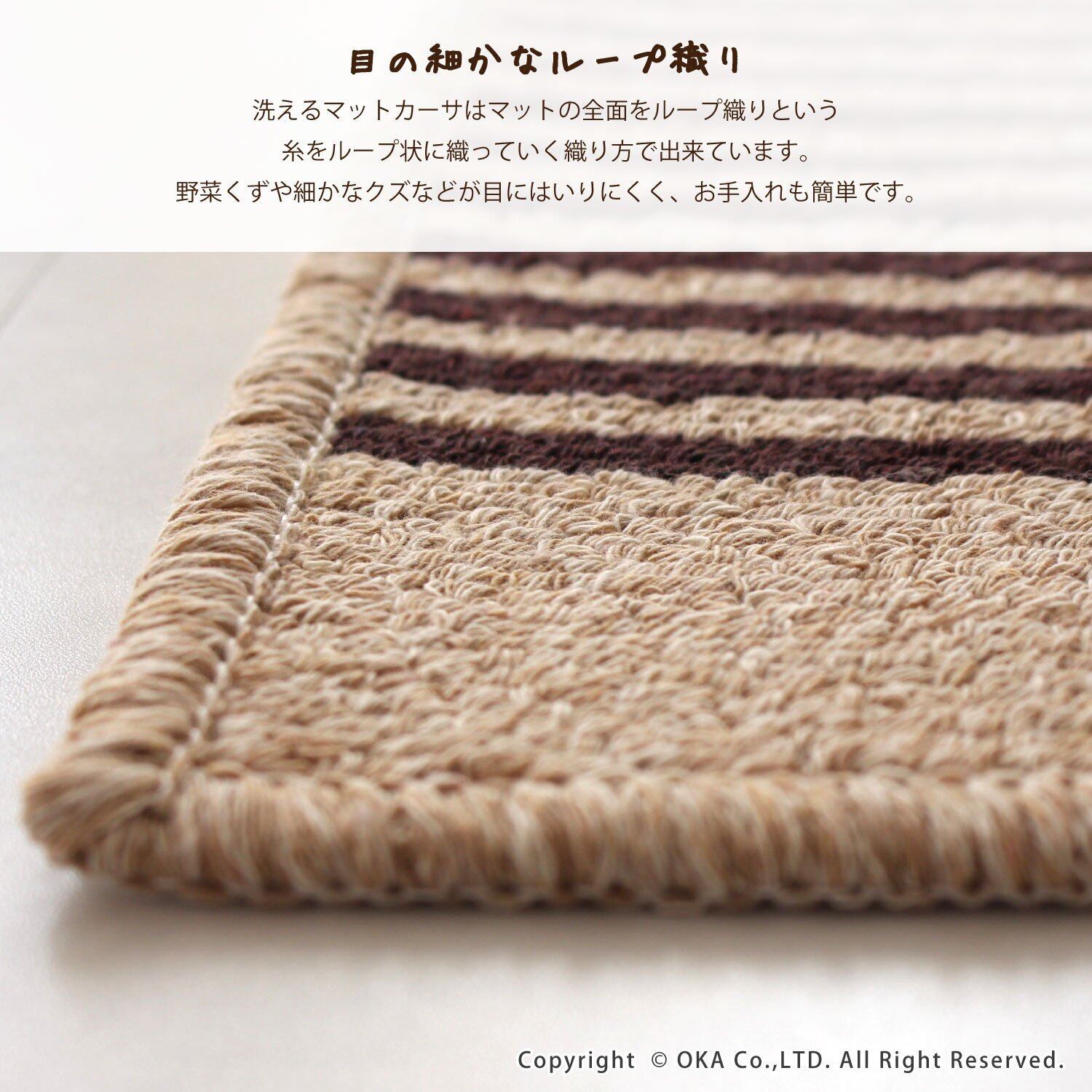 オカ カーサ キッチンマット 約45cm×180cm【ブラウン】(台所マット ボーダー CASA)