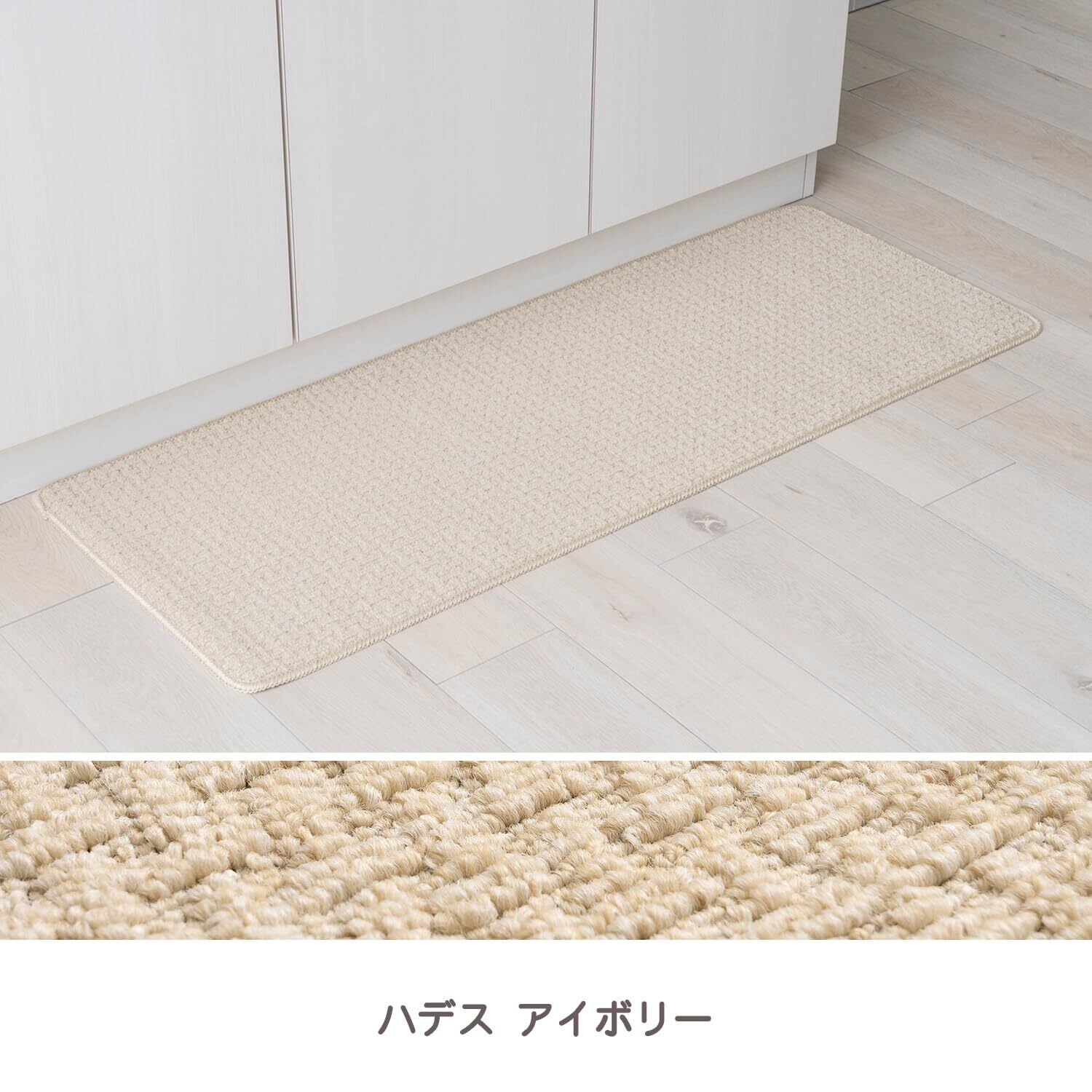 イケヒコ キッチンマット 洗える ずれない 滑り止め ハデス アイボリー 約45×75cm 北欧 無地 シンプル 一人暮らし 新生活 玄関 洗面所 台所 マット #1302610148501