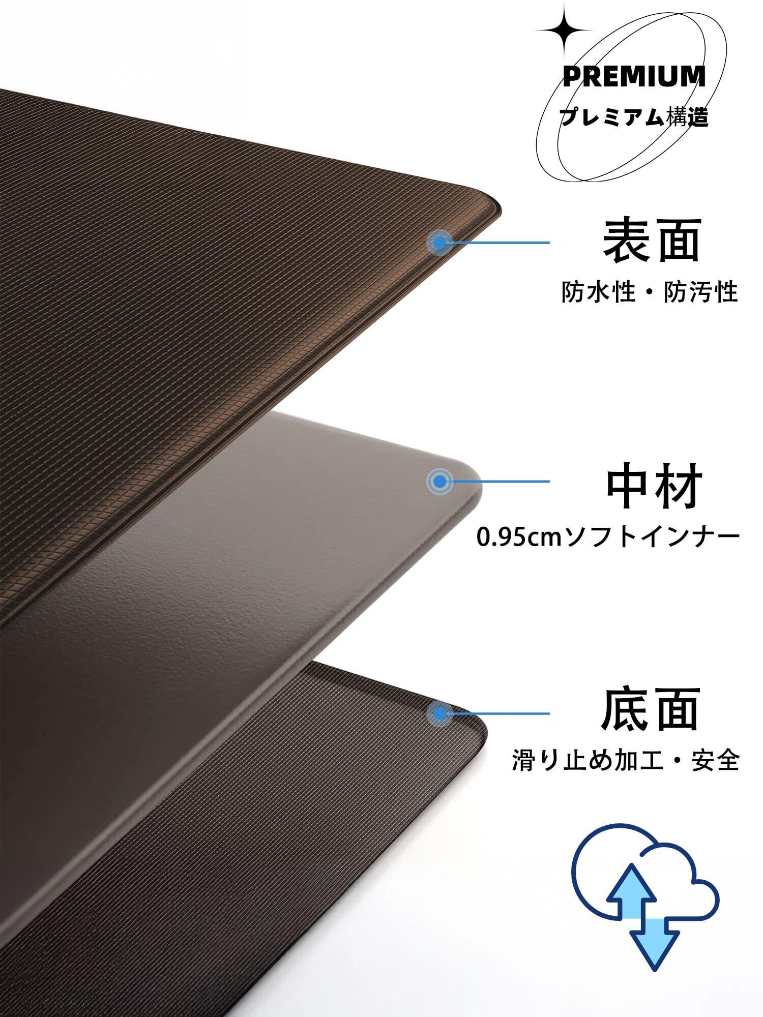 キッチンマット 240 拭ける キッチンマット60*240cm 撥水 厚さ10mm クッション性 防汚 抗菌 防臭 フロアマット マット 床 台所 マット ロングキッチンマット ポリ塩化ビニール ずれない 洗濯不要 低反発 クッション性あり 60x240cm ブラウン