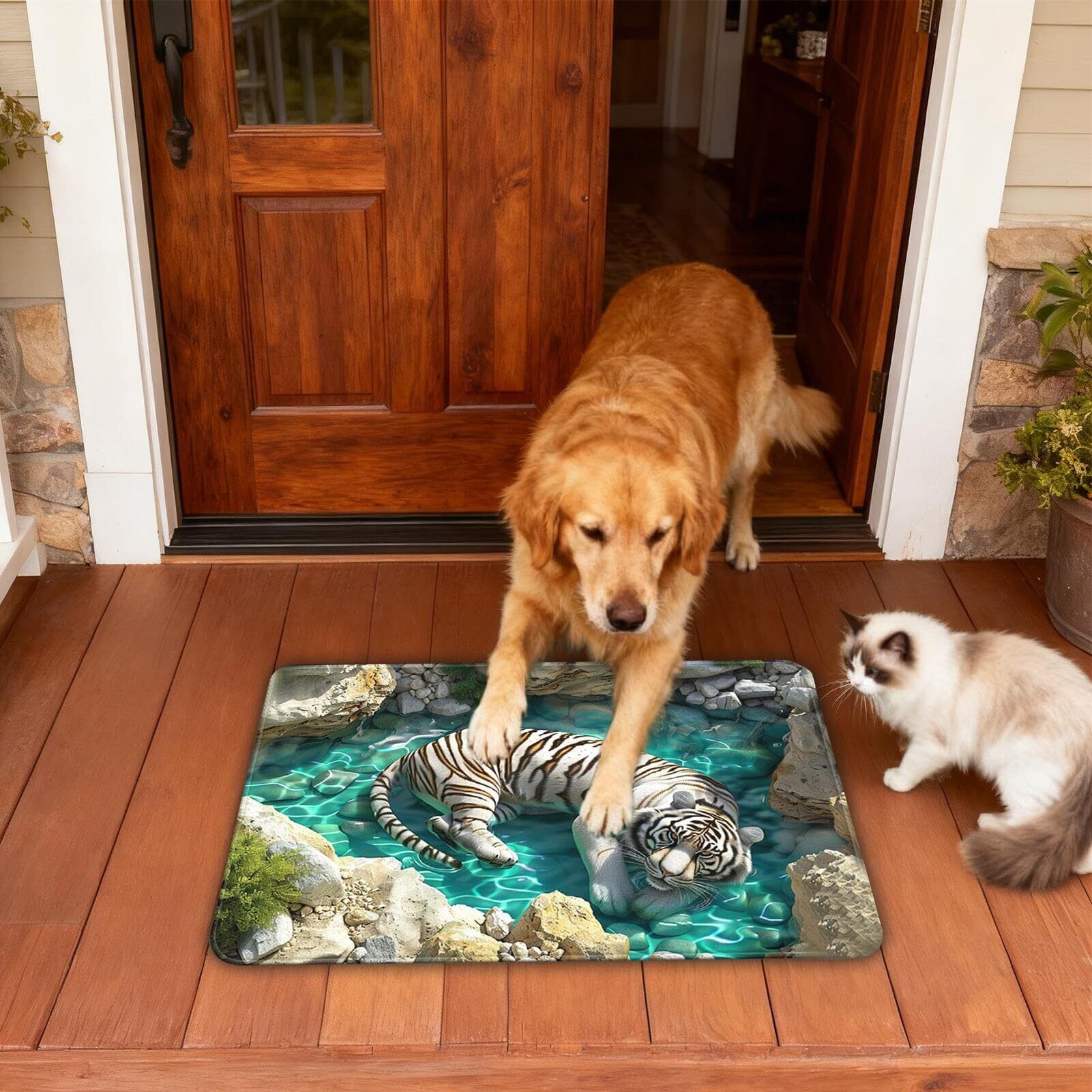 魅力的な錯覚デザイン: ペットの心を捉える没入型のデザインが特徴の光学錯覚マットです。動きを誘発するビジュアルにより、活発な前足の動きや遊び心あふれるジャンプ行動を促進し、屋内で何時間でも楽しい時間を過ごせるおもちゃとして活用できます。