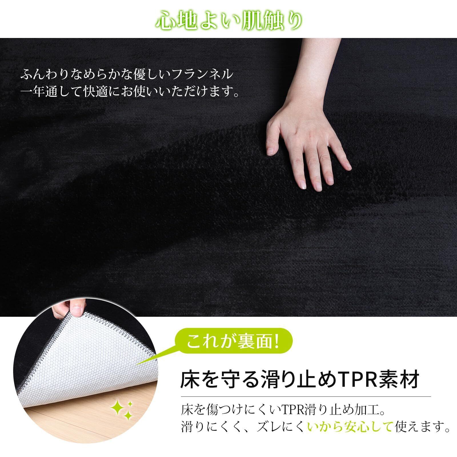 【短毛仕上げで、さらっとした触感とお手入れのしやすさを両立】毛足が短めのフランネルは、ホコリやゴミが絡まりにくく、さっと掃除しやすいのが嬉しいポイント。日常的なお手入れは、掃除機やコロコロで十分対応できます。毛足が長いラグのように汚れが入り込みにくいので、わざわざ洗濯する必要もなく、忙しい日でもサッとお手入れできて清潔をキープしやすいです。