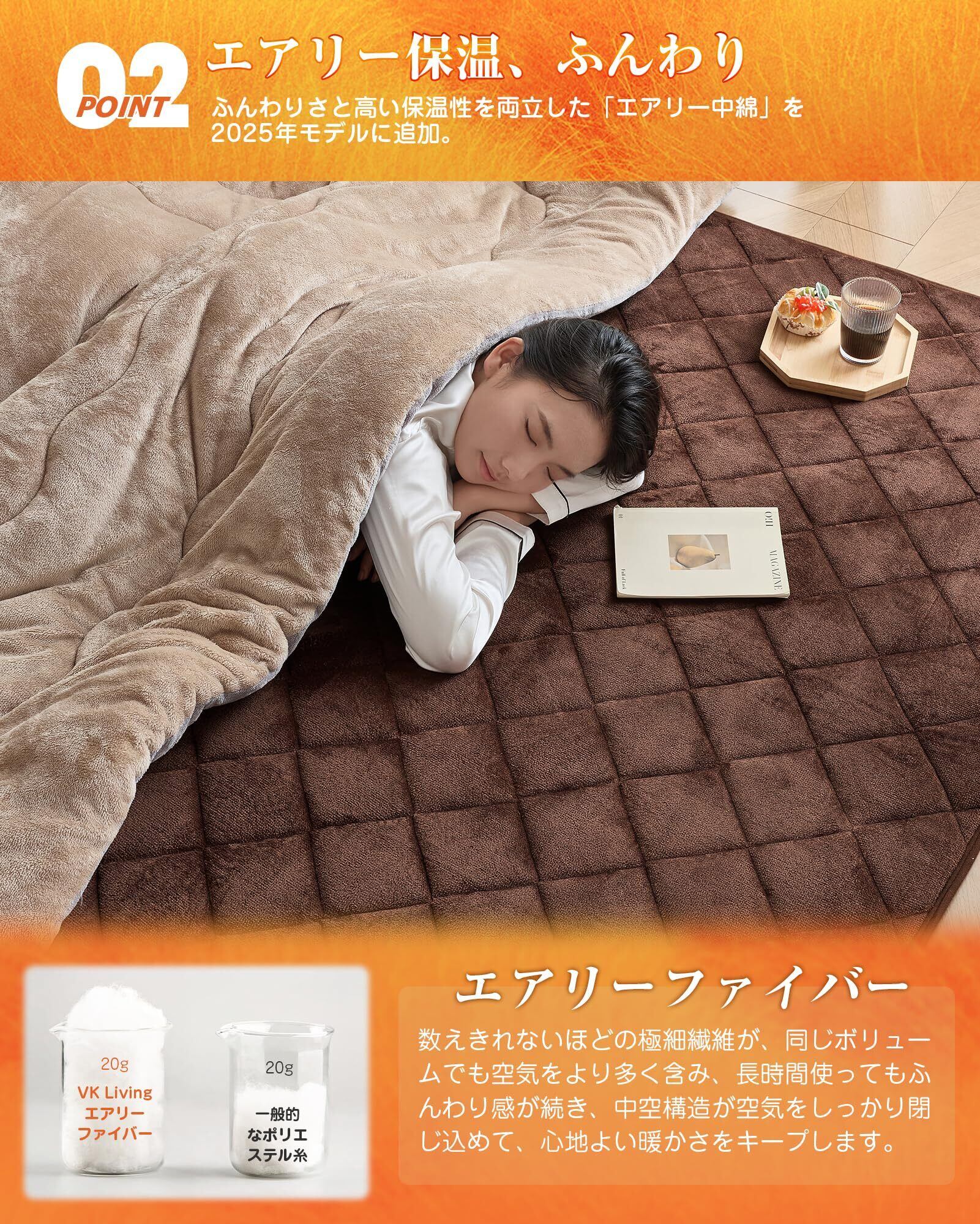 【新着商品】VK Living こたつ敷き布団 ラグ 3畳 【SUPER HOT】 両用 カーペット こたつマット 長方形 こたつ敷布団 190×240cm キルトラグ 厚手 マイクロファイバー ふんわり ウレタン10mm ホットカーペット対応 滑り止め付き おしゃれ ブラウン