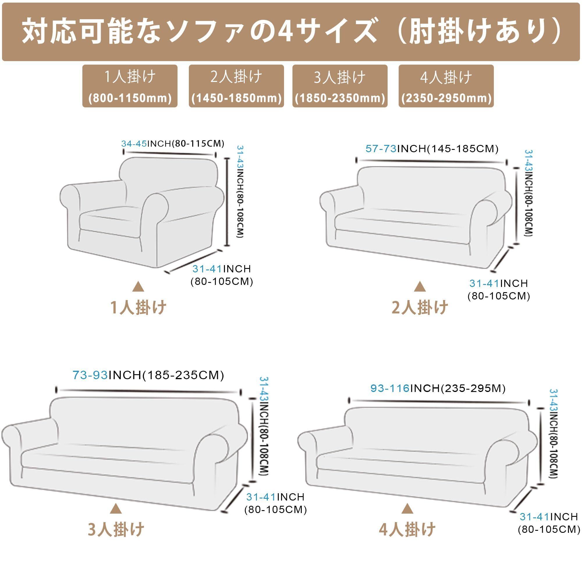 【滑り止め】このソファーカバーは伸縮性の高い素材、伸縮性のある裾が縫い付けられており、ソファーをしっかりと包み込み、しっかりとフィットし、滑り落ちにくいです。抜群の伸縮力でソファカバーが変形しにくい、簡単に着脱でき。肘付きソファーに適用します。