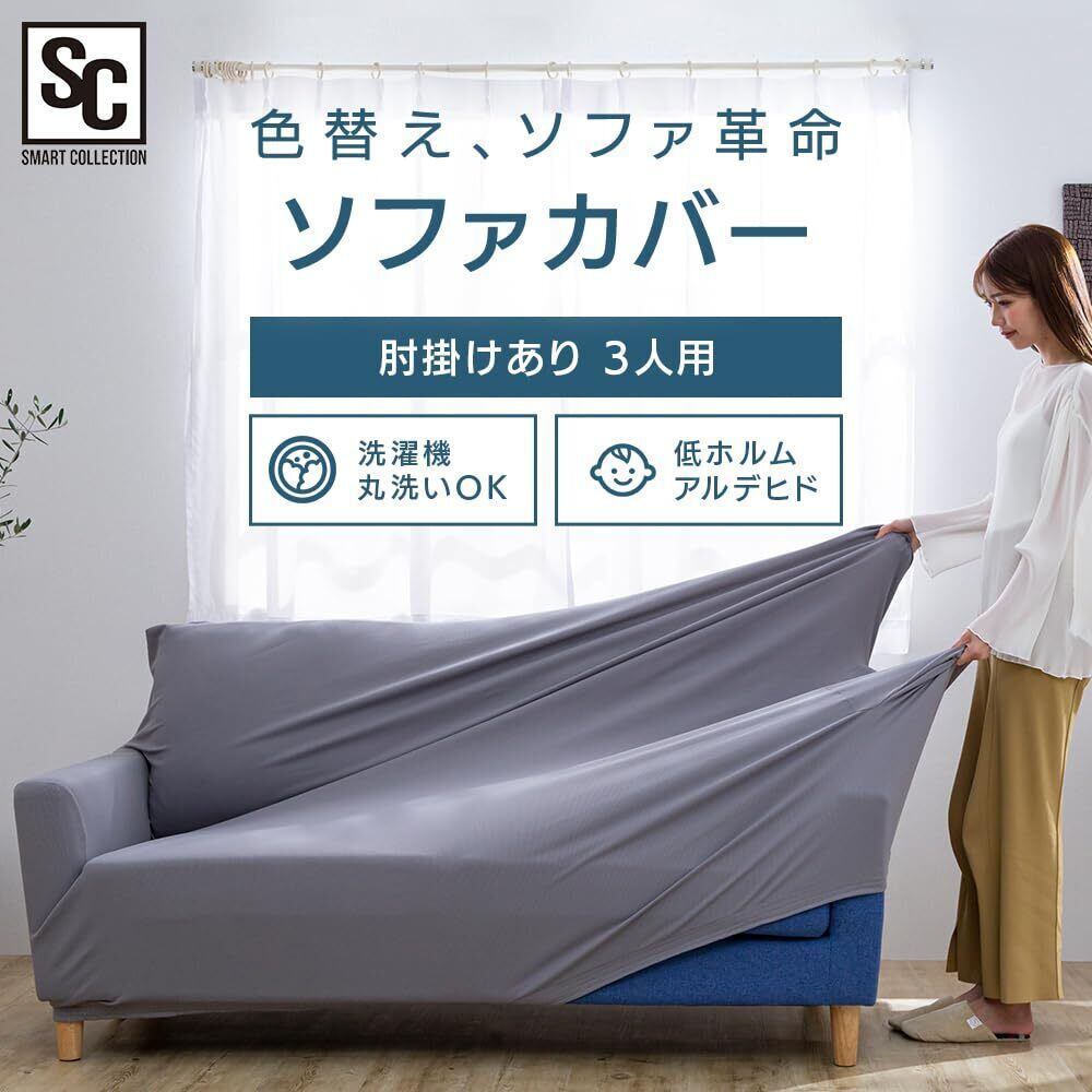 アイリスプラザ ソファカバー 3人掛け かけるだけの簡単ソファカバー 伸縮素材伸 自宅で丸洗いOK 抗菌防臭 程よい凹凸のワッフル調 サラッと軽い触り心地 通気性バッチリ オールシーズン使用OKブルー(BU) NSFC-30