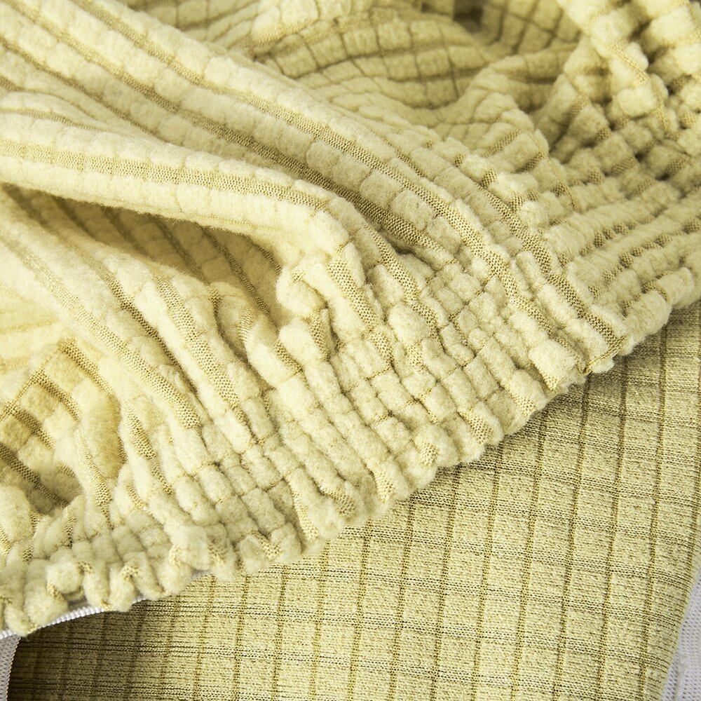 「優れたフィット感」入口箇所はゴムになっているのでずれにくいです。生地は柔らかくて大きく伸縮するため、フィットする椅子のサイズ範囲はかなり広いです。取り外しも簡単です。