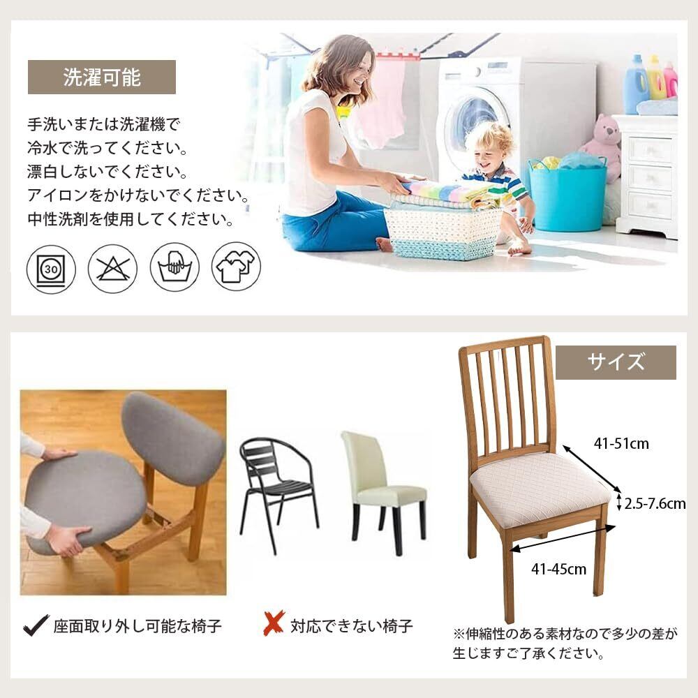 イスカバー 椅子カバー チェアカバー 座面カバー 撥水 ストレッチ 伸縮性 耐久性 バンド付 取り外し簡単 ダイニングチェアカバー フィット キッチンチェアカバー スリップカバー 食卓用椅子カバー おしゃれ インテリア 伸縮素材 引越し 新居 (カーキベージュ, 4枚セット)