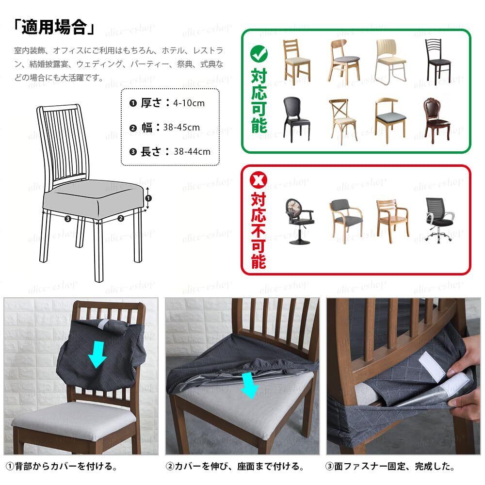 【伸縮性TPU生地&100%防水性】この座面カバーは、ポリエステル+防水素材(TPU隔水分子膜)で作られ、防水性100%、柔らかく手触りが良い、高密度で、水や飲み物が椅子についても弾くものなので、濡れにくくなります。優れたストレッチ性で、チェアにぴったりフィットします。一人でも簡単に取り付けます。高い耐久性を持ち、何年も使用しても耐久性があります。