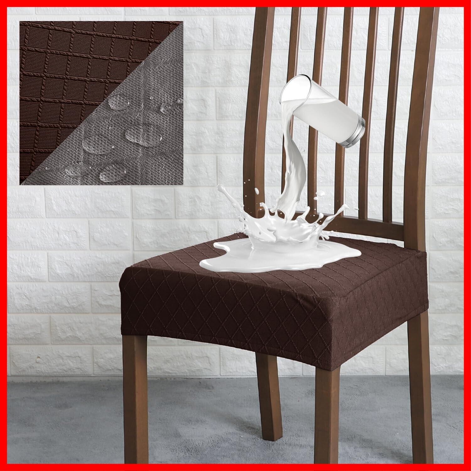 「§zz.luxi」座面カバー チェアカバー 完全防水 2枚セット 菱形ジャカードデザイン 背部バックル付き TPU生地 100%防水 ダイニングチェアカバー ストレッチ 伸縮素材 耐久性 汚れ防止 ファッション 洗える 家庭 ホテル ペット パーティー ウェディング キッチン 洗える 取り外し可能(コーヒー)