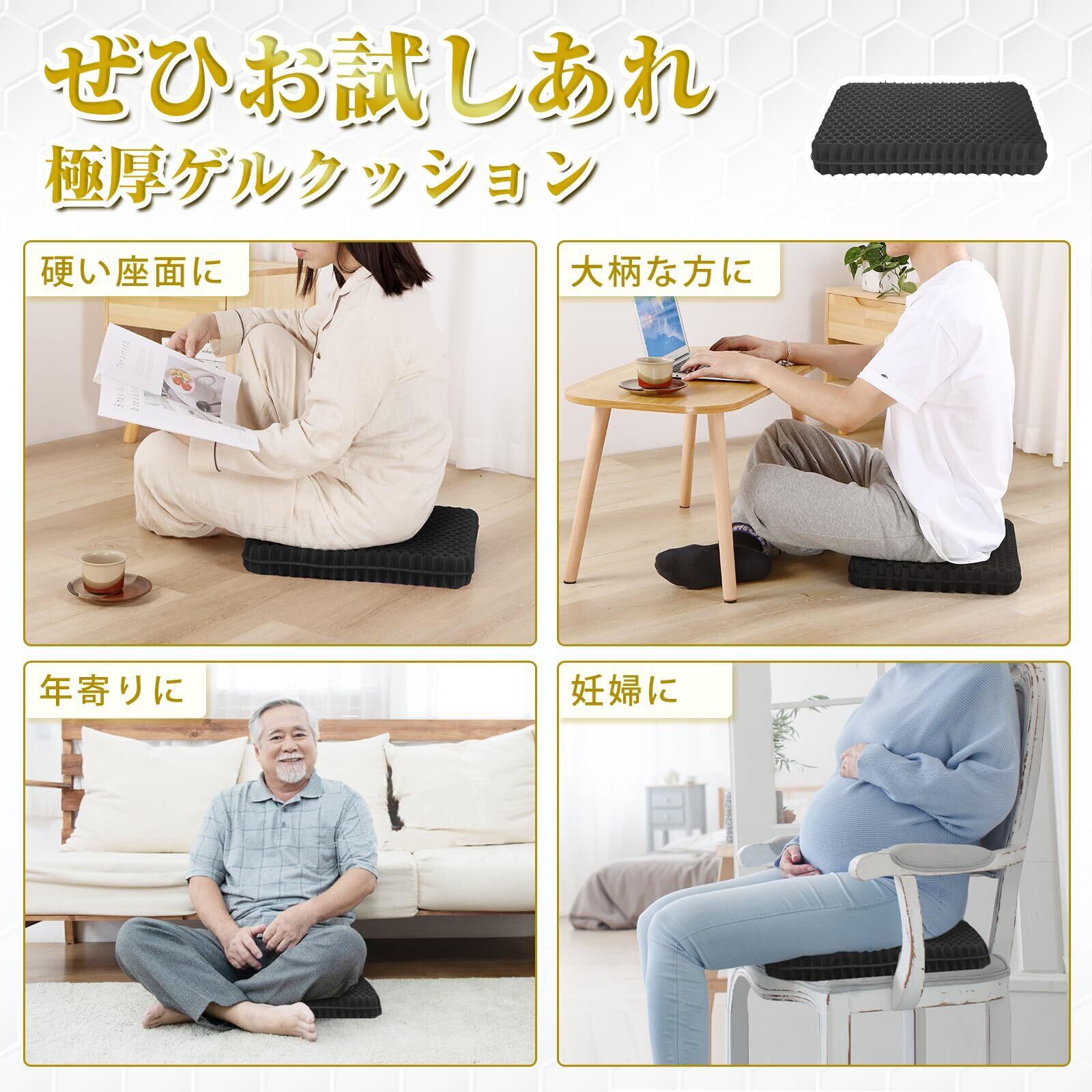 チチロバ(Titiroba) ゲルクッション 極厚6cm カバー付き 無重力 座布団 ハニカム構造 蒸れない 敬老の日 在宅勤務 オフィス 車 椅子 自宅用 洗える 42×37×6cm ブラック 22FC013