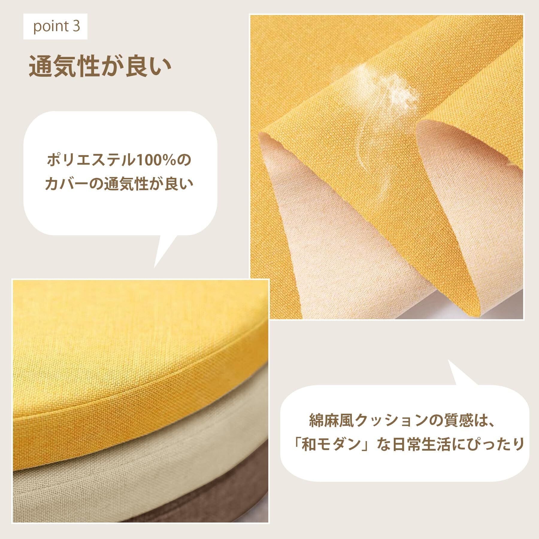 座布団 AYO 低反発 椅子クッション フロアクッション 2枚セット 厚め4CM 麻風 無地 裏面は滑り止め加工 メモリーフォームオールシーズン シートクッション ダイニングチェア用(アイボリー,2枚セット弧長40cm)