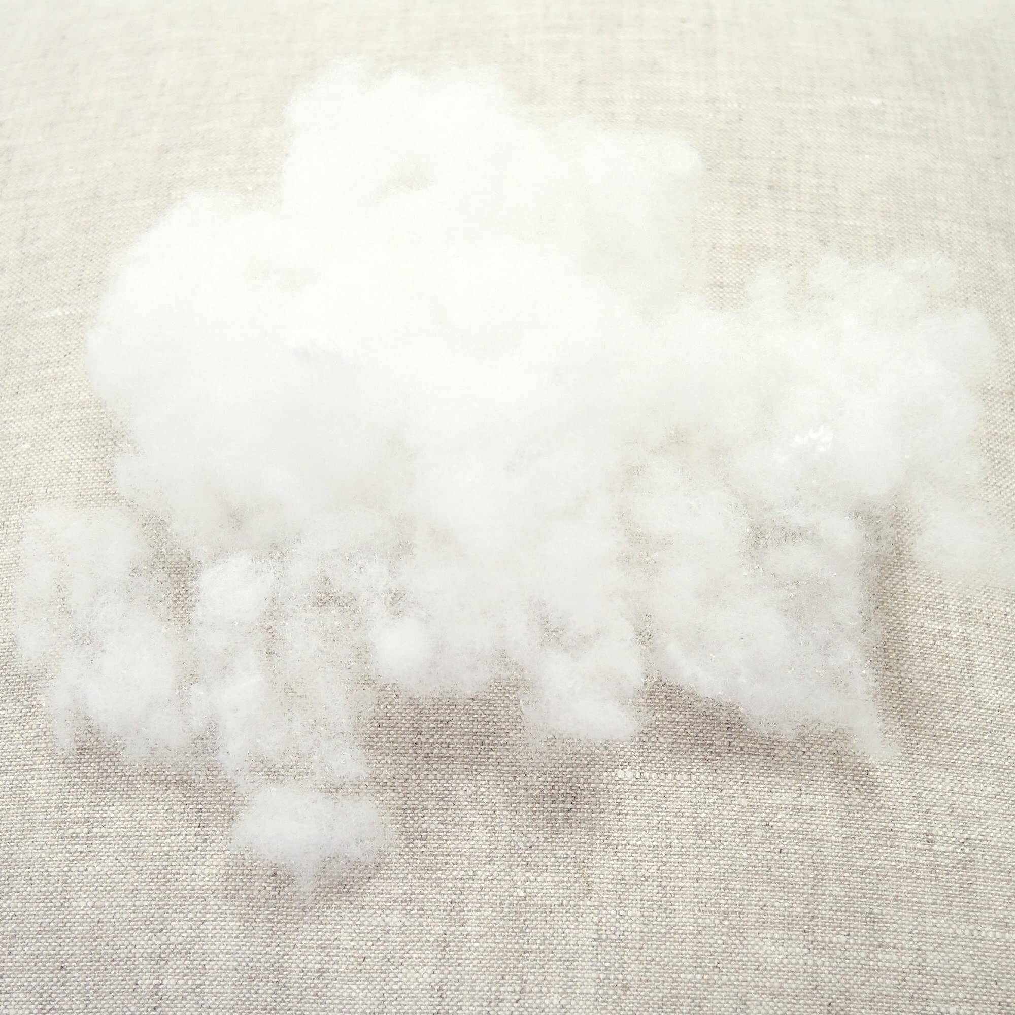 ダウンの感触に近づけるため、球形処理をした特殊ポリエステルわたを使用しています 柔らかな感触が特徴で、両腕で抱きしめていただくとその風合いをよりお感じいただけます