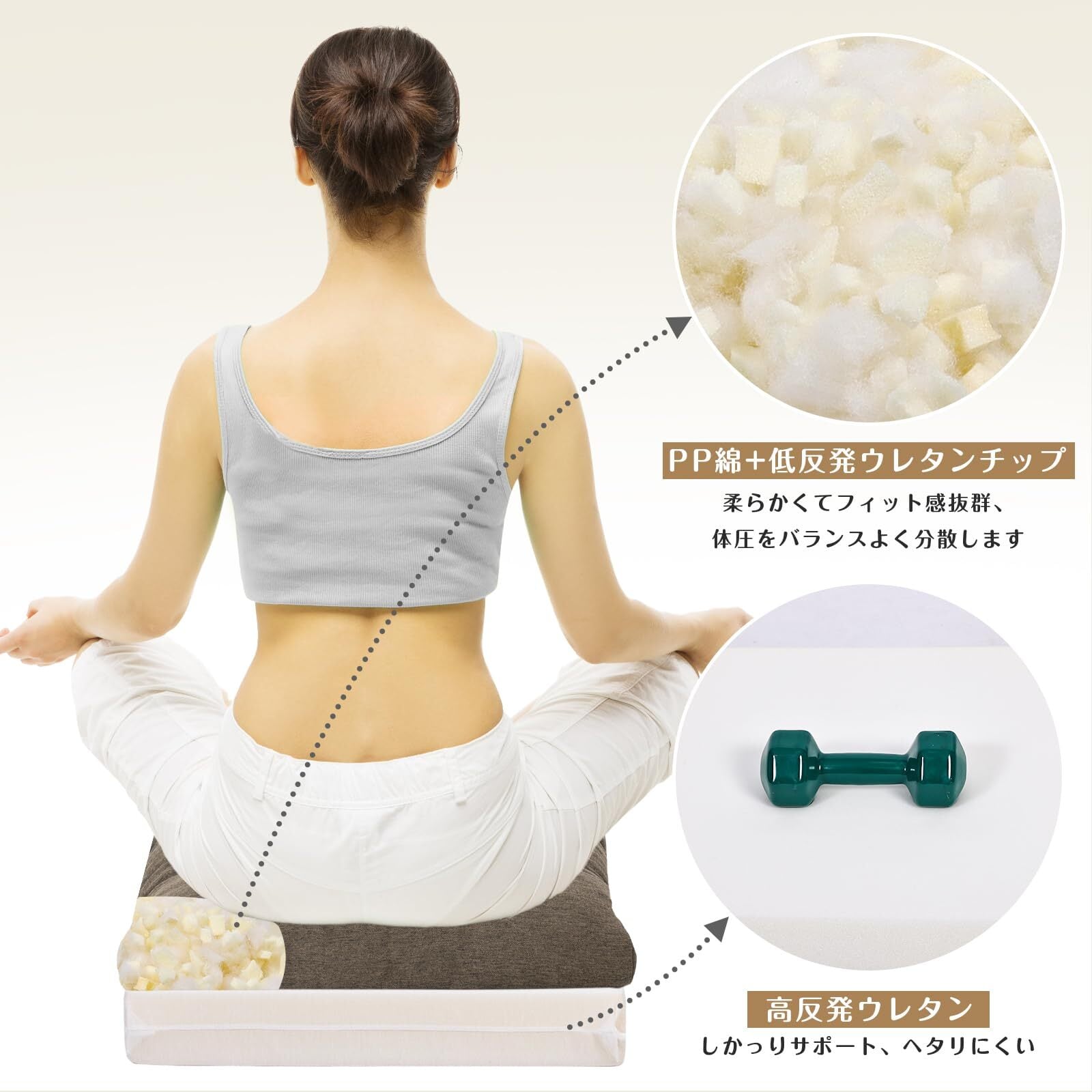 【用途が広い】 この座布団クッションは、和室やリビングの床や畳の上に座る際のフロアクッションとしてはもちろん、背当てクッション、うつ伏せ用クッション、肘当てクッション、足枕としても使えます。気分に合わせて自由にお使いいただけます。快適な生活をお楽しみください。