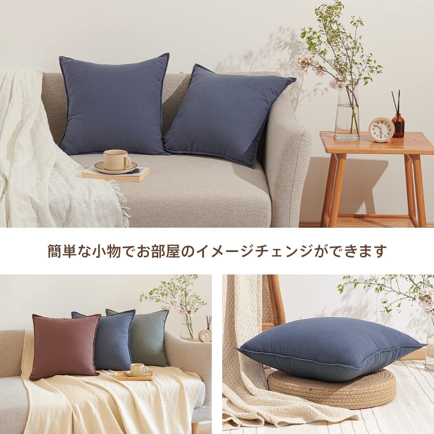 【在庫処分】クモリ(Kumori) クッションカバー 45X45cm 2枚セットリネンっぽい 北欧 おしゃれ 無地 シンプル 綿麻っぽい 肌触り良い ソファ背当て 装飾枕カバー 座布団カバー 和室 居酒屋 業務用 旅館 お料理屋 しっかりした生地 2枚組 ブラウン