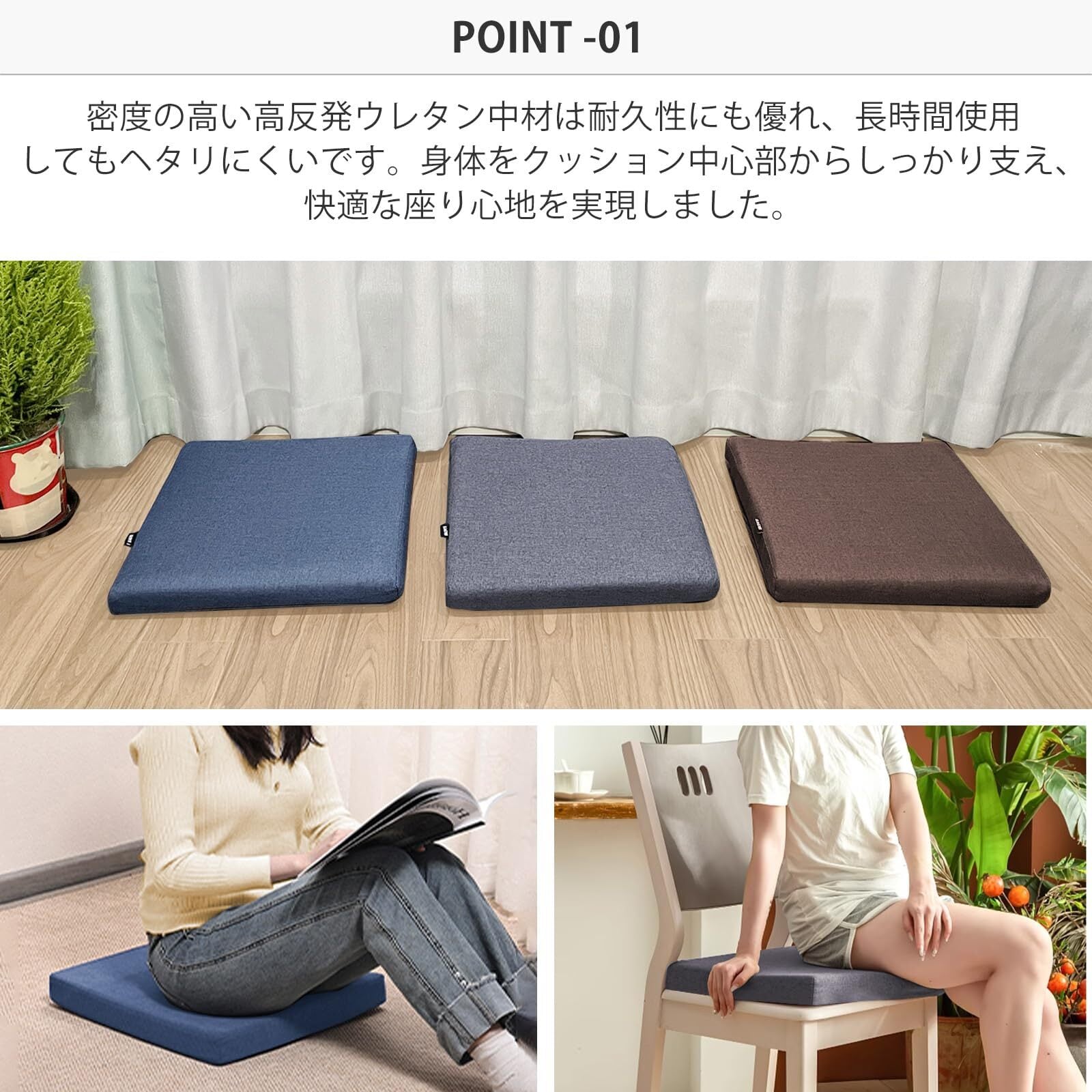 【座布団クッション、2枚セットはお得です】座布団の中身はソフトな粘弾性高密度ウレタンを使用し、硬すぎず柔らかすぎず、沈み過ぎず、座り心地はいつも快適。5cm厚みなので、座る時に底付き感もなし、木製のチェアやフローリングに座ると座り心地がいいです!また耐久性優れ、長期間使っても変形しません。