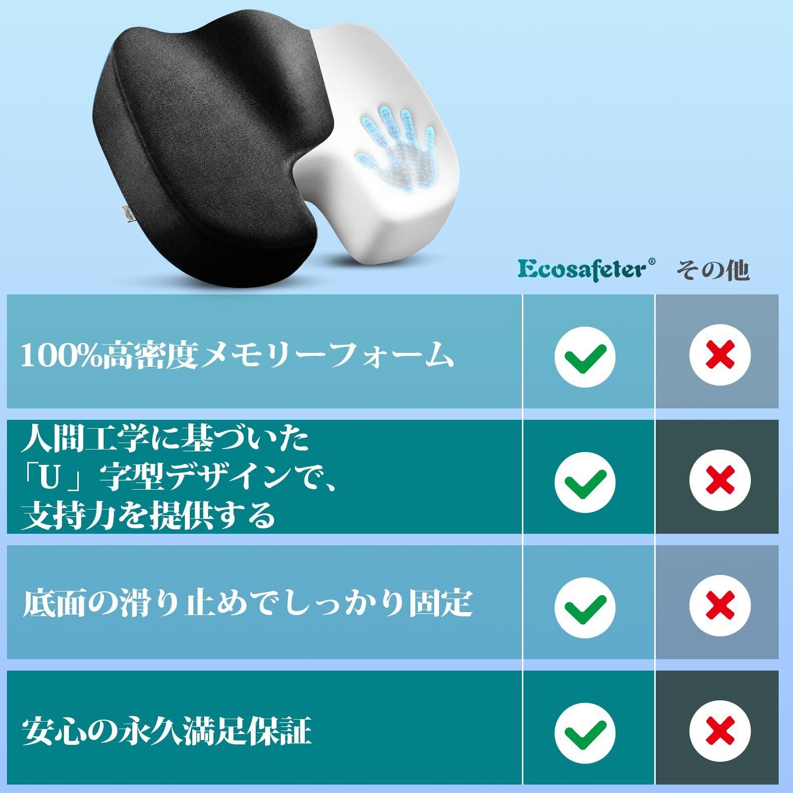 ️【圧力分散設計】 Ecosafeterシートクッションは、体型にフィットする高密度メモリーフォーム製で、尾骨部位には独特の凹みが設計されている。U字型デザインは、座る人の体重を適切に分散し、お尻に快適なサポートを提供します。あらゆるオフィスチェアに長時間座るのに最適です。