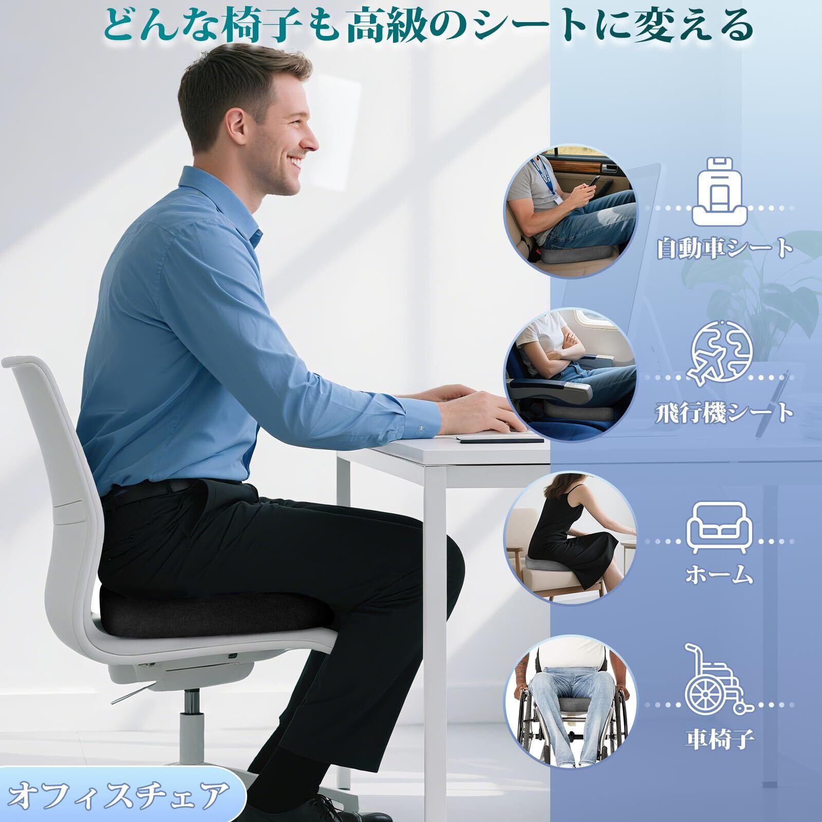【特価商品】【2026アップグレード版クッション-美しい包装】低反発 チェアパッド 座布団 お尻が痛くならない 通気性 滑り止め底