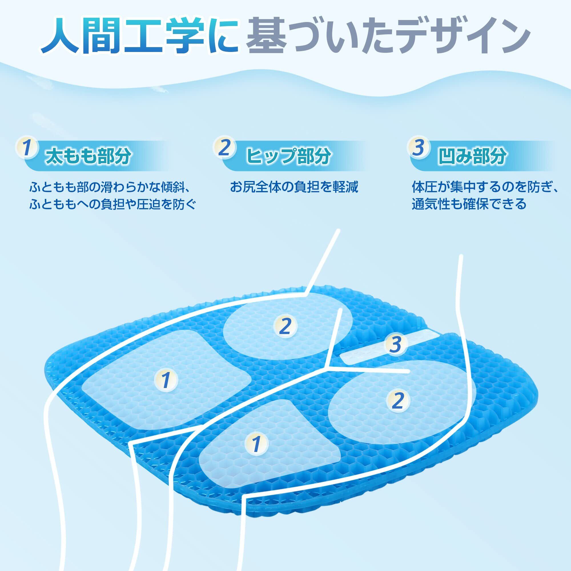 •特大ゲルクッションはおしりだけでなく、太ももまでしっかりカバーできます。普通サイズよりもっと快適です。